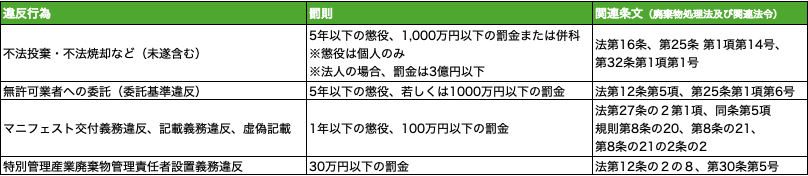 廃棄物処理を間違えた時の罰則